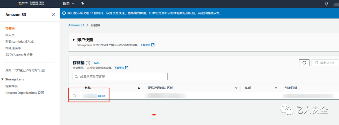 亚马逊云注册相应的存储桶,填入相应的名称和区域即可,接管后再次访问会变为 UnauthorizedAccess