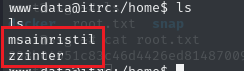 在 /home 目录下发现两个用户 msainristil 和 zzinter ,我们的 目标是获取这两个用户或root的权限。