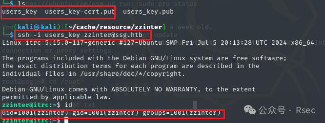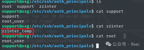 在 /etc/ssh/auth_principals 文件夹中,可以知道 zzinter 用户可以使用 zzinter_temp ca 登录。