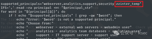 代码还对 principal 进行了限制,只能 webserver,analytics,support,security 是四个字段之一。看似限制,实则提醒。