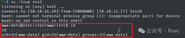 成功反弹 shell ,获取 www-data 权限。