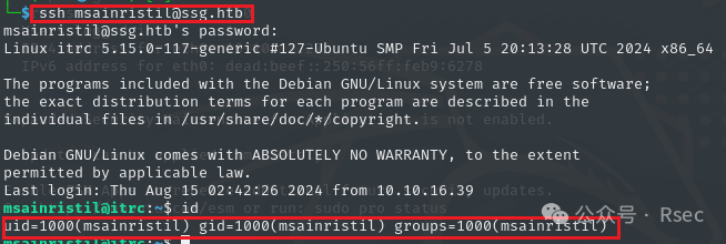1ssh msainristil@ssg.htb