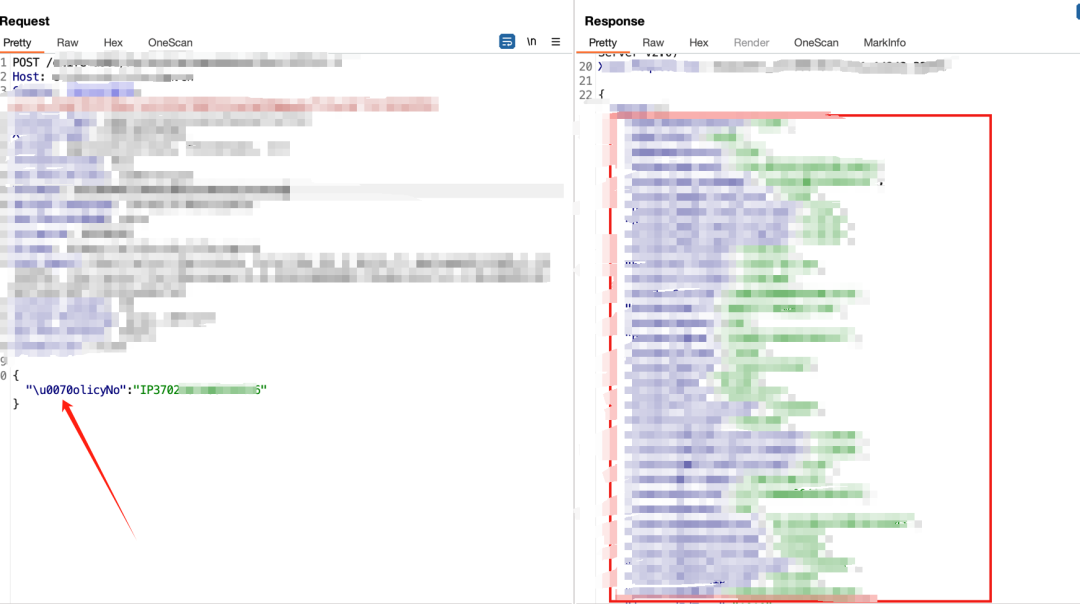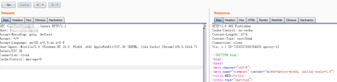 以下面这个为例,测试某接口发现被拦截