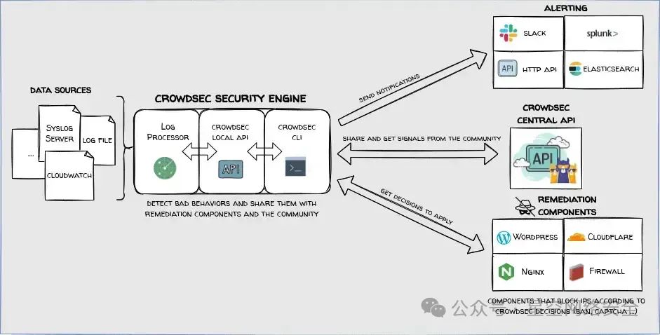 CrowdSec 是一款先进的协作行为检测引擎,旨在实时识别和消除威胁。它建立在 fail2ban 的基础上,但在速度、效率和对现代云原生和虚拟化环境的适应性方面有显著增强。