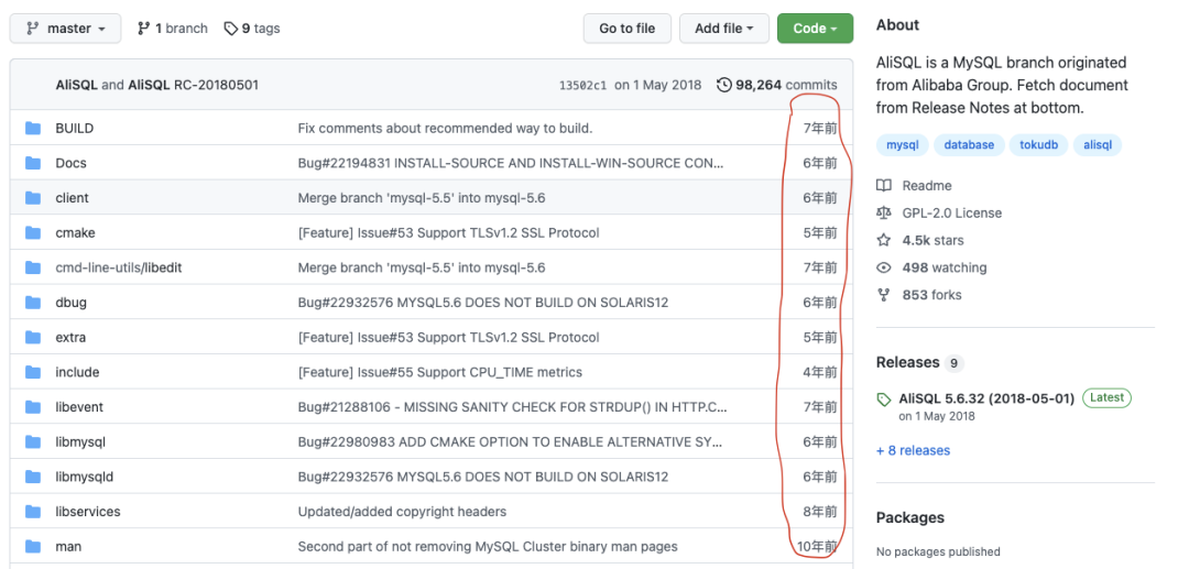 因为产品没有没有用户社区,这些大公司也自然没有耐心去长期维护一个数据库产品。我们可以看到阿里巴巴开源的AliSQL已经五年没有更新了。