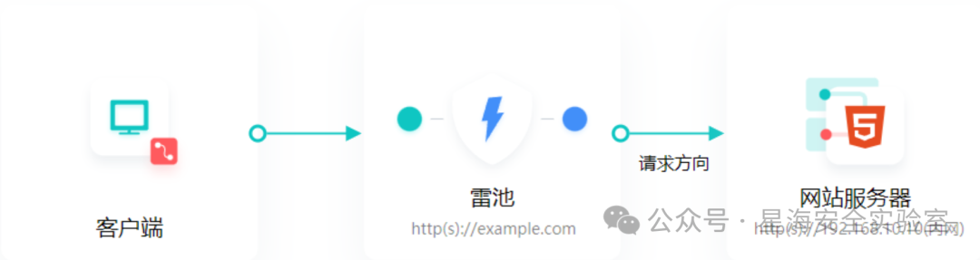雷池社区版主要以反向代理的方式工作,类似于一台 nginx 服务。部署时,需要让网站流量先抵达雷池,经过雷池检测和过滤后,再转给原来的网站业务。