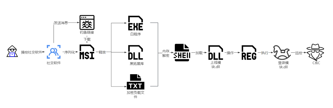 近日,奇安信病毒响应中心通过用户反馈其设备在登录即社交软件后,自动向联系人列表群组发送了信息,且信息疑似为钓鱼链接,通过进行追踪分析后,认为此次事件为后攻击阶段升级控制的攻击活动。目前天擎产品已支持对该活动的精准查杀,天擎客户无需太担心。