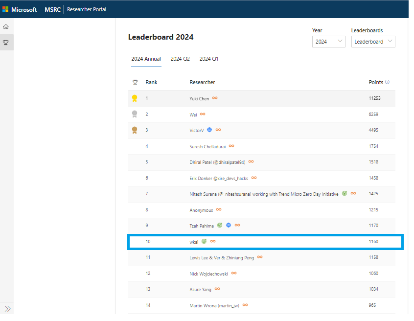 MSRC 2024全球总榜单位列第10,Windows 榜单位列第3。