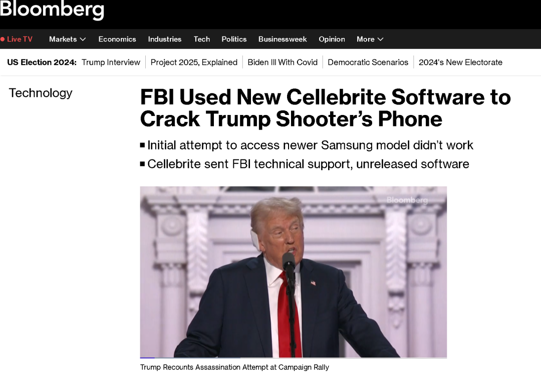 关键词破解手机在上周末20岁的托马斯·马修·克鲁克斯试图刺杀特朗普未果后,FBI在本周一公开宣布成功破解刺客携