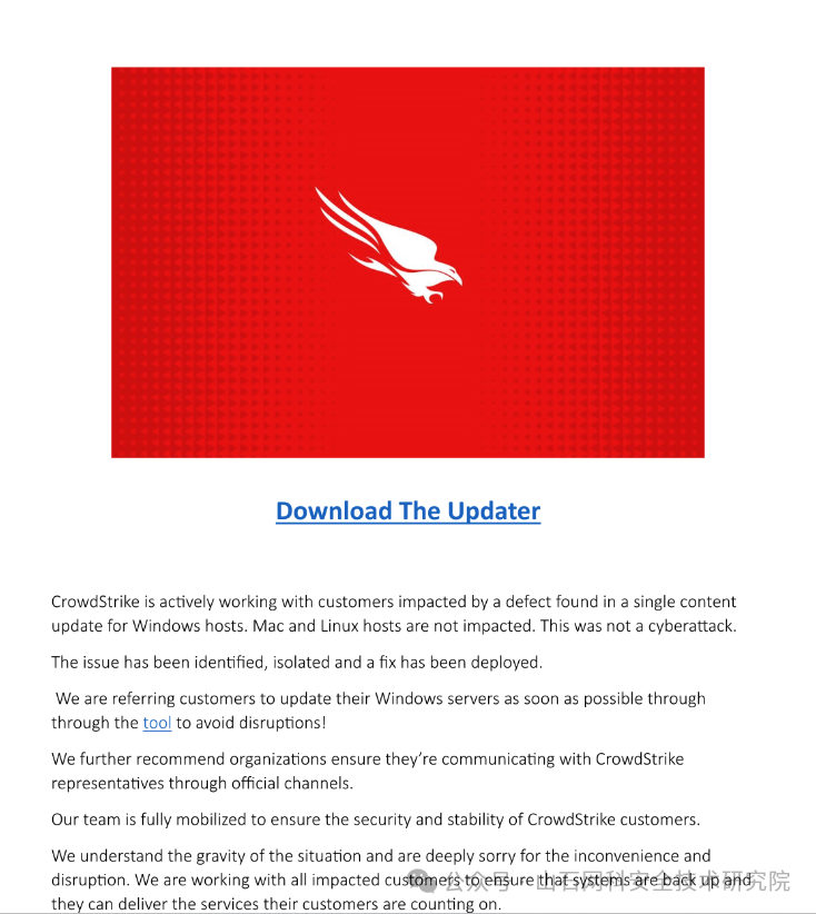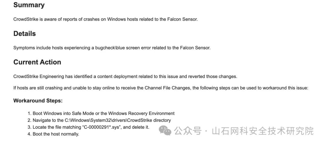 CrowdStrike Falcon Sensor的一项自动更新中的驱动程序导致系统崩溃并出现蓝屏。初步估计,这次蓝屏可能影响了近千万台使用Windows的设备,目前也没有很好的恢复方法,只能一台台手动恢复,其中涉及大量关键基础设施