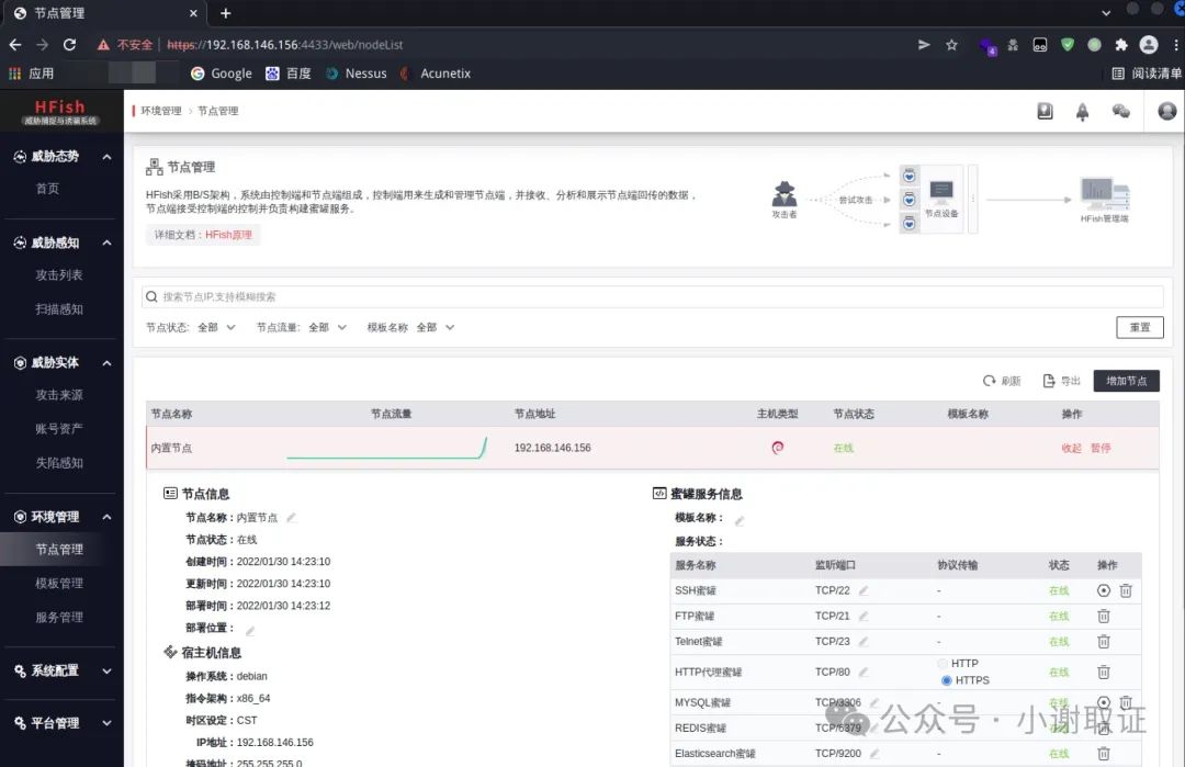 HFish是一款社区型免费蜜罐,侧重企业安全场景,从内网失陷检测、外网威胁感知、威胁情报生产三个场景出发,为用户提供可独立操作且实用的功能,通过安全、敏捷、可靠的中低交互蜜罐增加用户在失陷感知和威胁情报领域的能力。