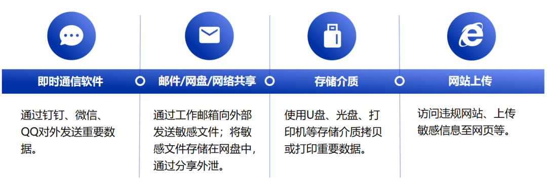 通过用户异常行为分析、敏感数据智能识别、外发全通道管控能力三位一体一体化解决企业面临的数据泄漏风险,为企业建立全域数据安全和运营的治理体系