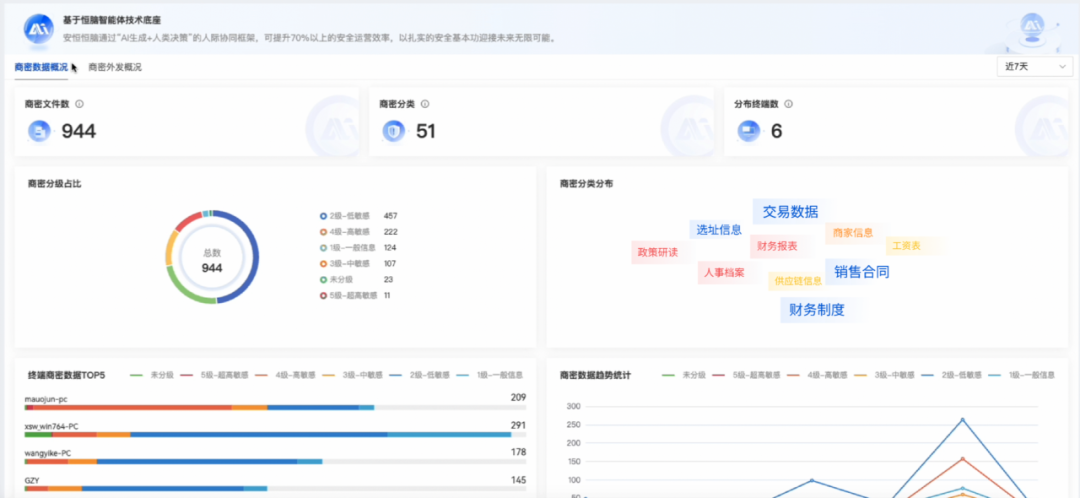 安恒信息办公智盾作为一款终端安全智慧解决方案,从数据智能识别、数据防泄漏、数据加密、溯源追踪多方面考虑为集团提供全方位的商业秘密保护,为企业的稳健发展保驾护航