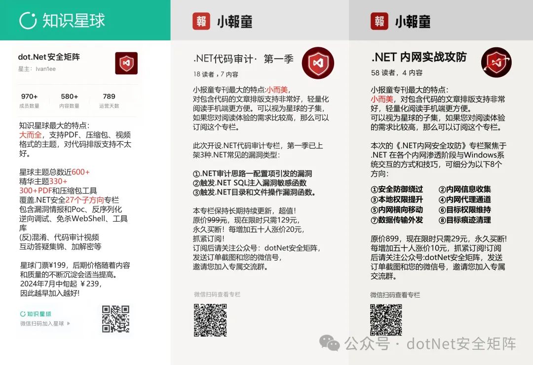 *是一个大而全的.NET安全知识社区,包含了.NET应用漏洞情报和27个专栏系列,涵盖了从基础到高级的多种主题,这里不仅有压缩包工具、PDF文档,还有在线的视频主题。