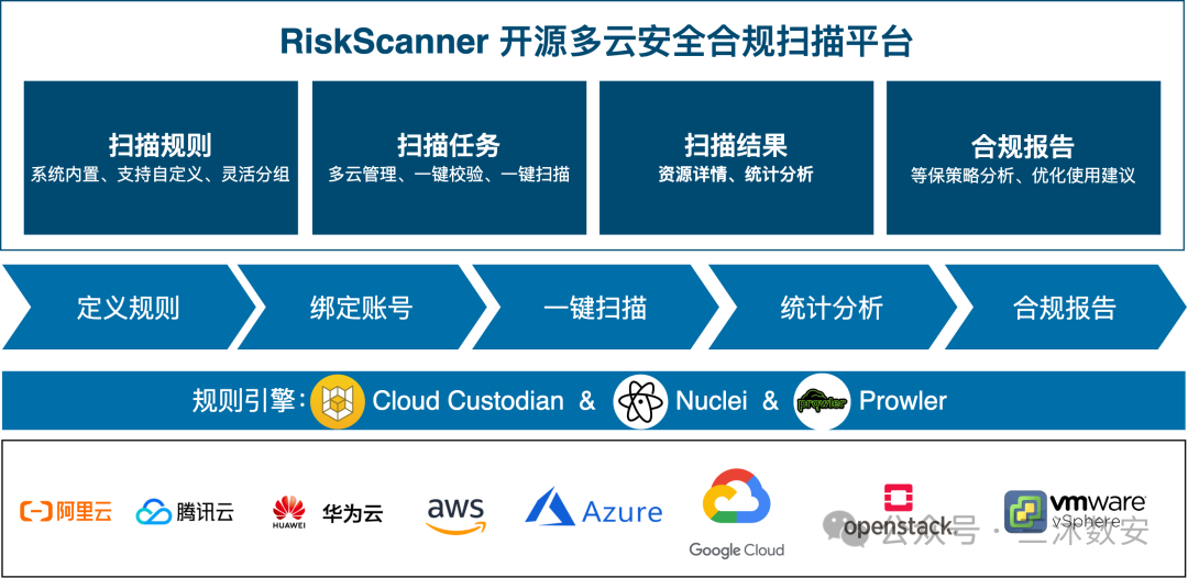 RiskScanner 是开源的多云安全合规扫描平台,基于 Cloud Custodian 和 Nuclei