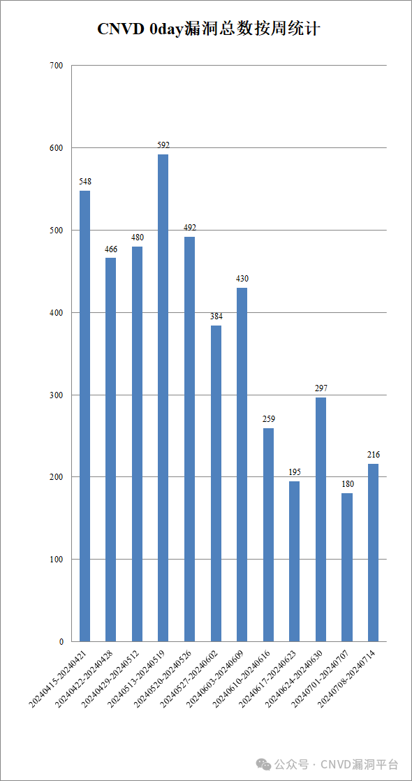 国家信息安全漏洞共享平台(以下简称CNVD)本周共收集、整理信息安全漏洞329个,其中高危漏洞155个、中危漏洞158个、低危漏洞16个。漏洞平均分值为6.52。本周收录的漏洞中,涉及0day漏洞216个(占66%),其中互联网上出现“Tenda AC10U堆栈缓冲区溢出漏洞(CNVD-2024-31493、CNVD-2024-31494)”等零日代码攻击漏洞。本周CNVD接到的涉及党政机关和企事业单位的漏洞总数19961个,与上周(17463个)环比增加14%。