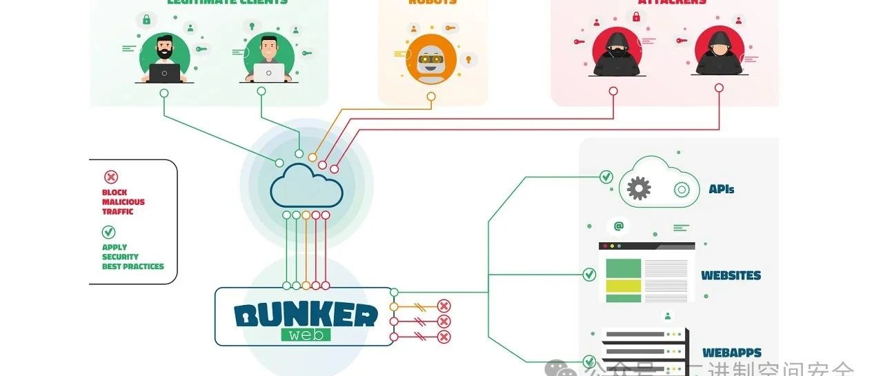 BunkerWeb是一个功能完备的Web服务器, 基于Nginx构建, 不同的是, BunkerWeb集成了WAF防火墙功能, 使Web应用程序默认保证其安全性。BunkerWeb可以无缝集成到企业现有的网络环境中