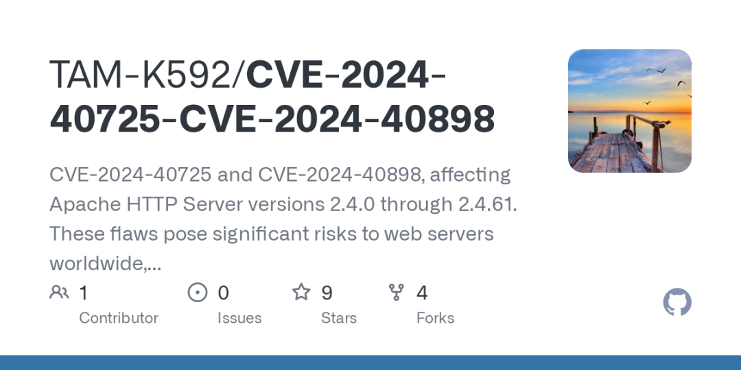 GitHub 上的一个仓库披露了两个Apache漏洞(CVE-2024-40725 和 CVE-2024-40898),这可能导致源代码泄露和服务器端请求伪造(SSRF)攻击。
